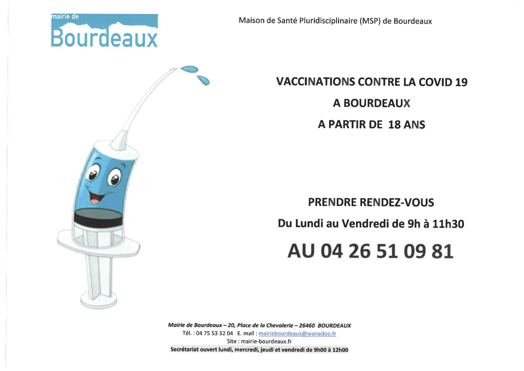 La Maison de Santé Pluridisciplinaire organise des permanences de vaccination contre la COVID 19 ouvertes [...]