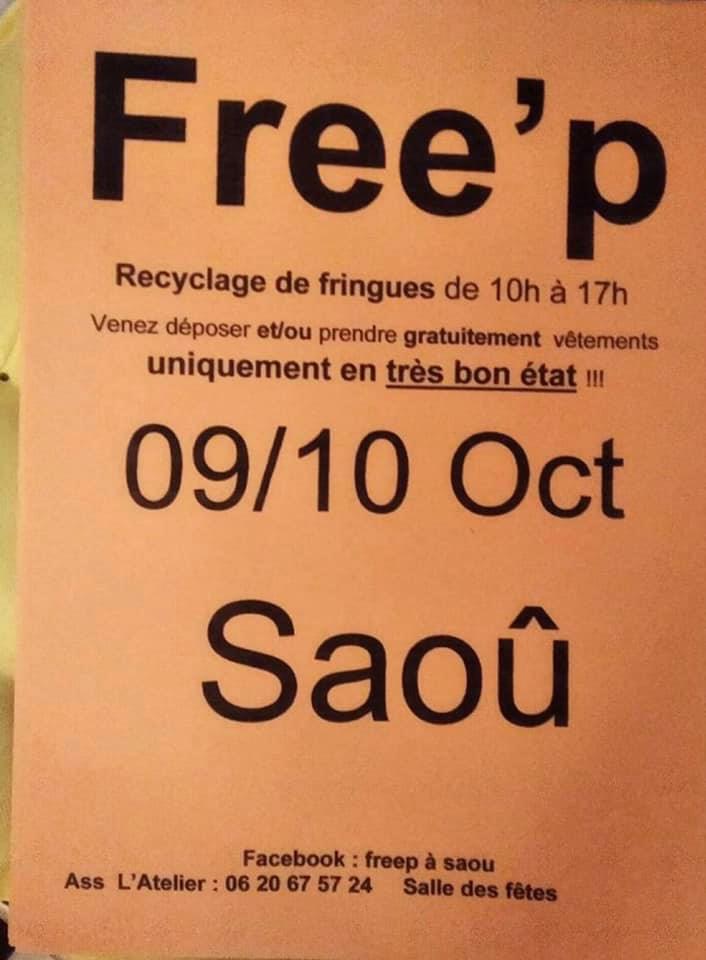 Erratum : cette fois encore, les Free’p se dérouleront à l’extérieur, côté « cours de l’école », et non dans la salle des fêtes comme indiqué sur l’affiche.